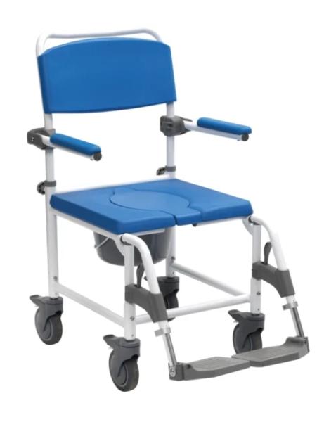 Der Dusch- & Toiletten-Rollstuhl Aston bietet Ihnen eine vielseitige Lösung. Er kann sowohl als Duschbegleiter oder Toiletten-Stuhl genutzt werden. Der Dusch- & Toiletten-Rollstuhl Aston verfügt über 5"-Hinterräder.