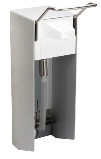 Seifen-/Desinfektionsmittelspender für Einwegflaschen, sowie Nachfüllbehälter und Hygienepackage, Aluminium gehäuse, kurzer Bedienhebel, 500 ml oder 1000 ml