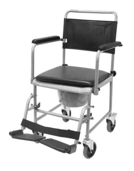 Der Drive Toilettenrollstuhl TRS 130 ist komfortabel, sicher und besonders stabil. Er kann auch ohne Eimer über das Toilettenbecken gefahren werden.