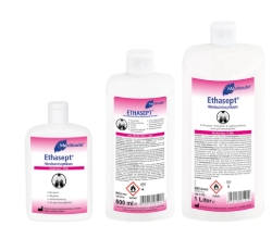 Ethasept® ist ein gebrauchsfertiges, alkoholisches, hautfreundliches Desinfektionsmittel ohne Parfüm- und Farbstoffe, welches zur Desinfektion für die menschliche Hygiene geeignet ist.