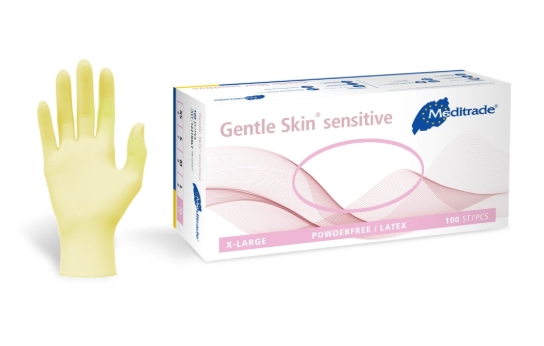 Latexuntersuchungshandschuh, naturweiß, puderfrei, unsteril, texturiert, mit Rollrand, beidhändig passend, nur für den Einmalgebrauch